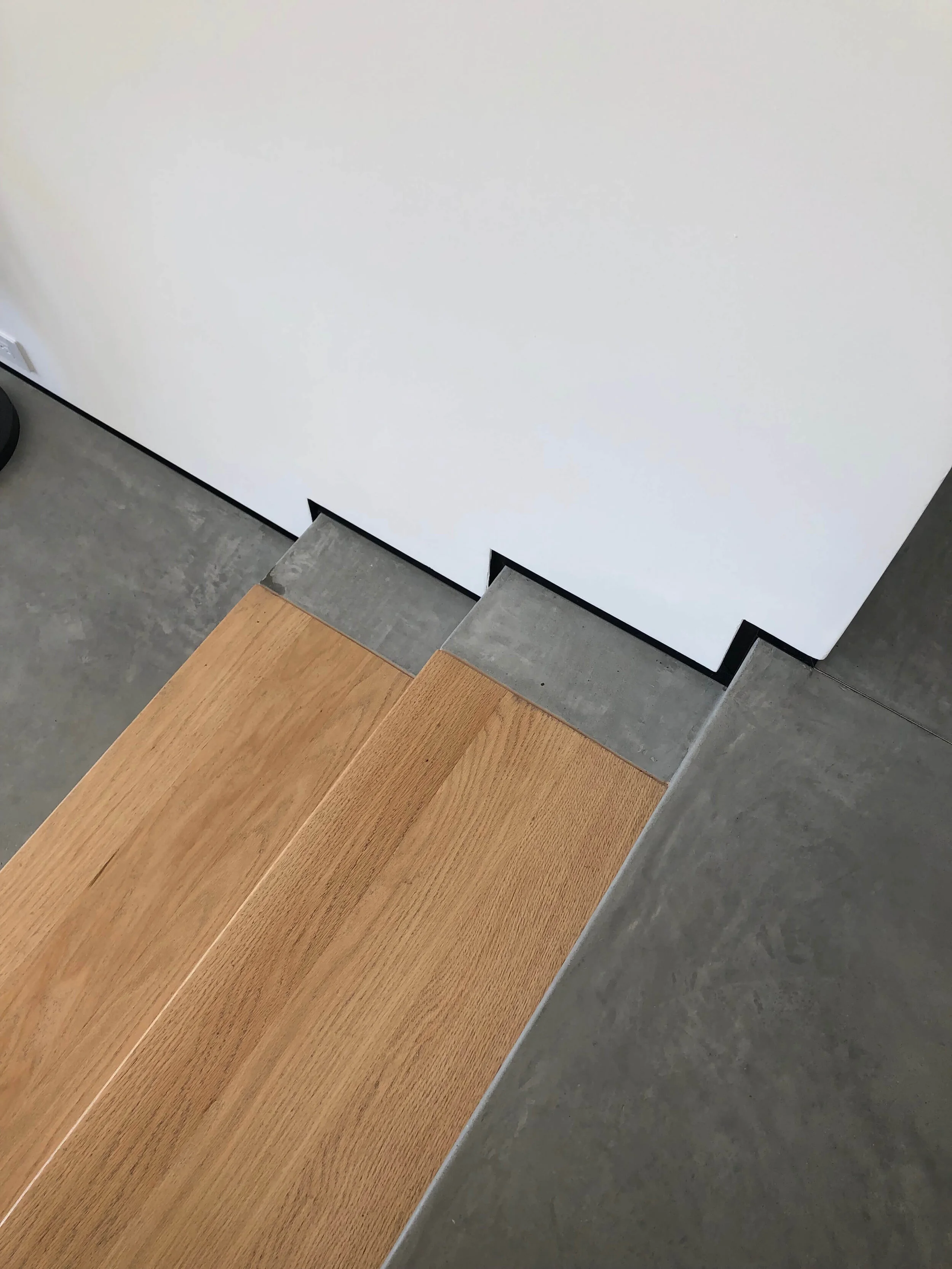 No baseboard used, just a reveal detail at the base of the walls in this contemporary Malibu home.
