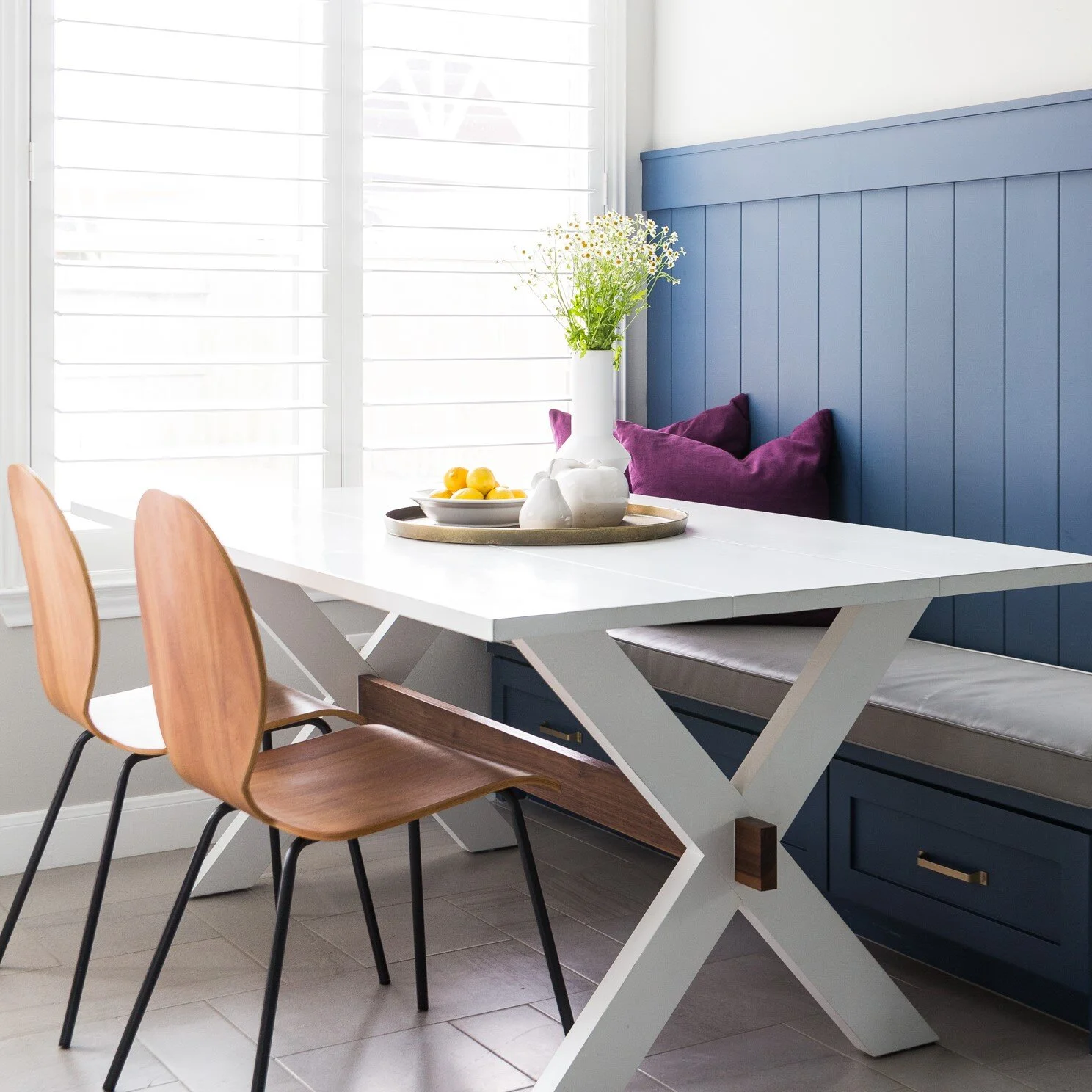 Round tray on breakfast room table | Designer: Carla Aston, Photographer: Colleen Scott