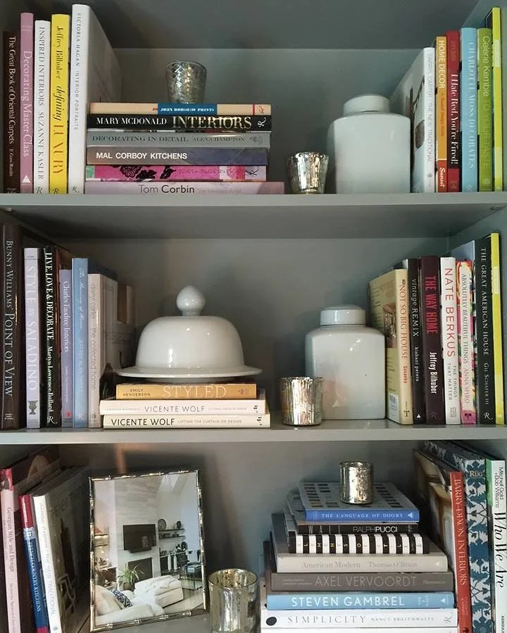 You see this a lot at markets and furniture shows, but I would not recommend it if I was styling bookshelves for a client.