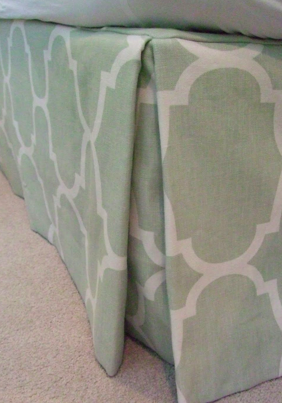 When a custom bedskirt is made, the fabric on the skirt is used at the edge of the decking, all the way around. This is done so that if -- for some strange reason -- the thing gets tugged to the point you're able to see some of the deck material, you’ll just see more of the skirt material - not that cheesy white fabric that always gets ripped. And because it fits perfectly, the pleats always land where they are supposed to. It’s wonderful!