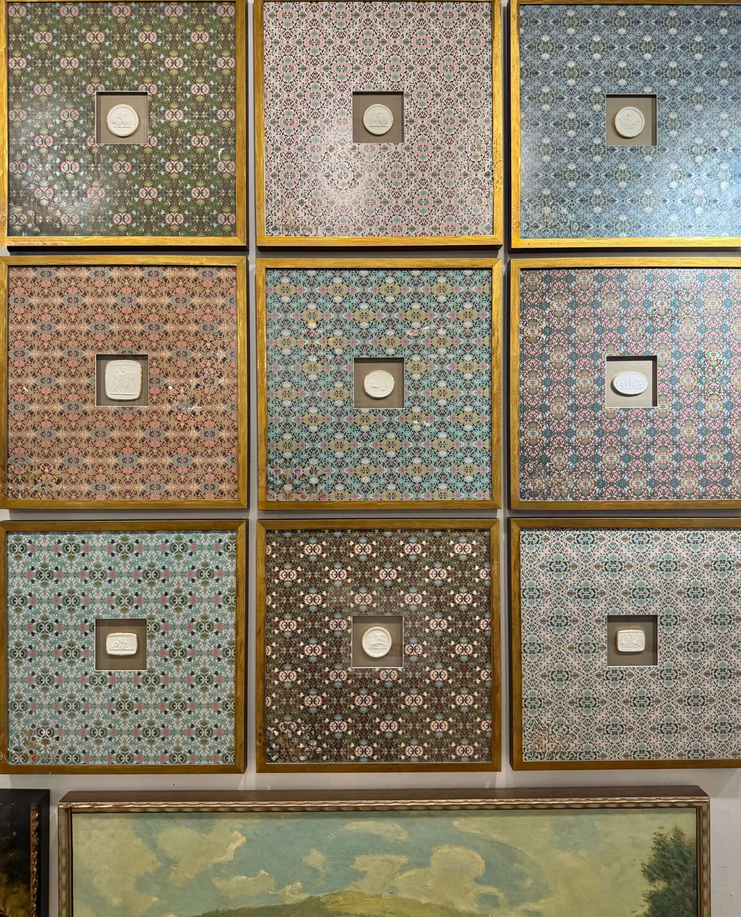 Cameos framed up with patterned mats from Shadowcatchers makes for a Grandma Chic wall display.