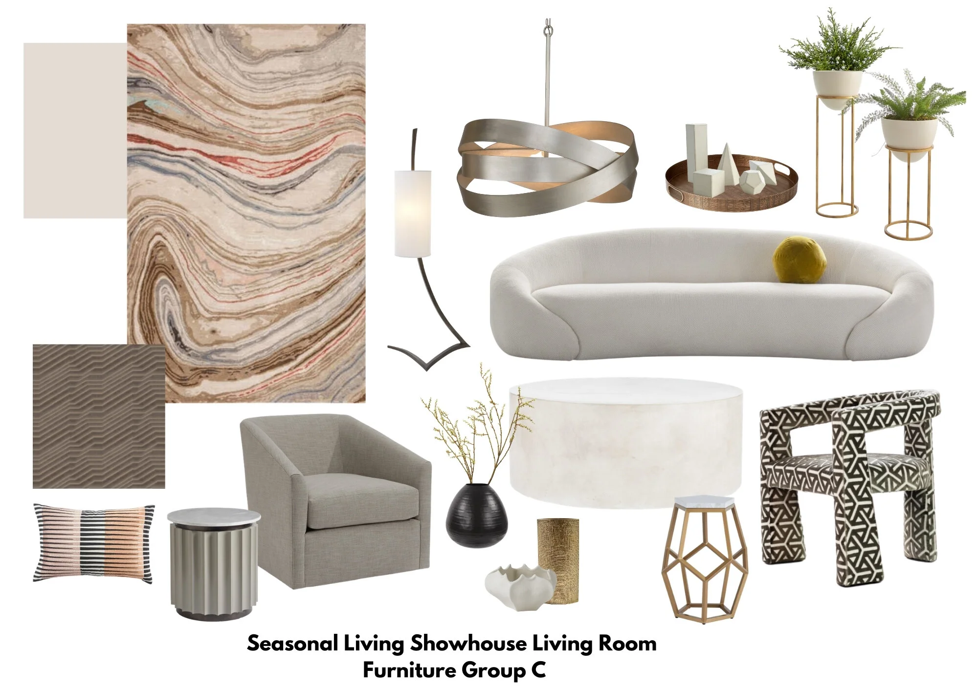 Travertine tile floors would work nicely with this color palette of cream, blush, clay, charcoal gray and black. | Carla Aston, Designer