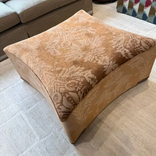 A beautiful, shapely ottoman in a damask pattern velvet was a stand out at Hickory Chair Furniture.