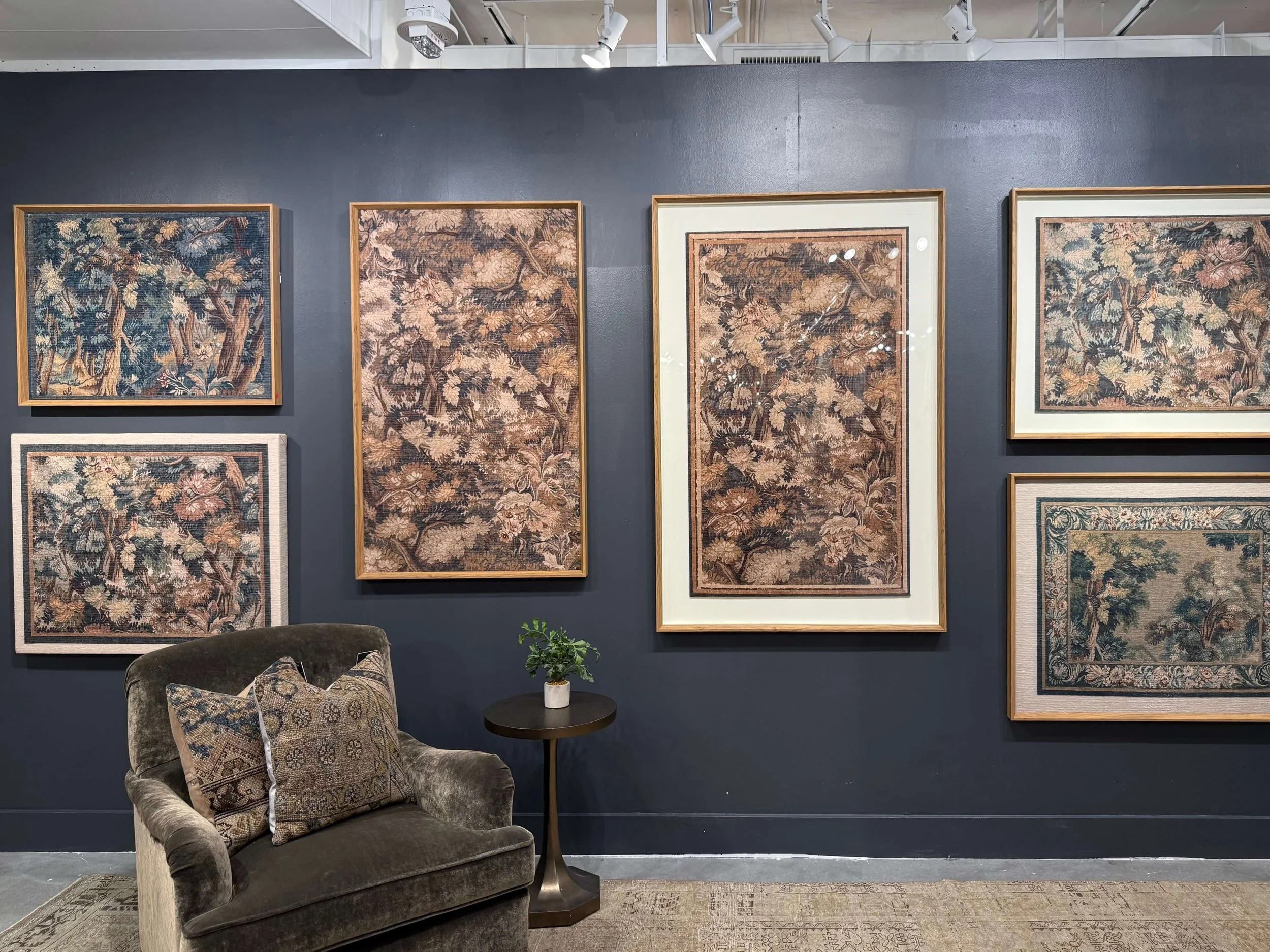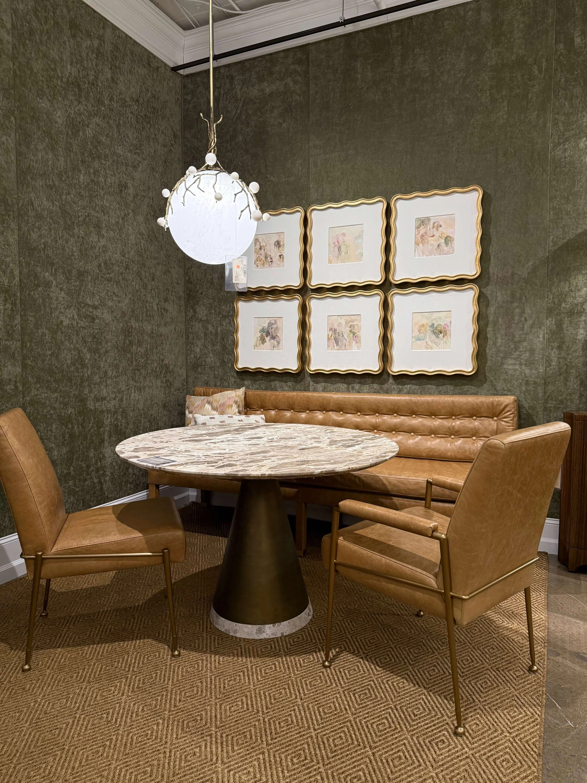 These tapestry-covered modern, curvy chairs were an interesting vibe in the Eicholz showroom. Definitely a newer look from the bouclé fabric on everything a few markets back.