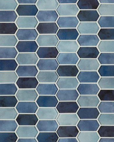 I like a glass tile in a melange type look. This mosaic tile might be a good option for that wall. Works well with the rug too.