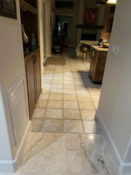 The homeowner was not looking to replace all the existing travertine anyway. Therefore, I recommended that she just add that travertine floor tile all the way through the kitchen and then the family room.