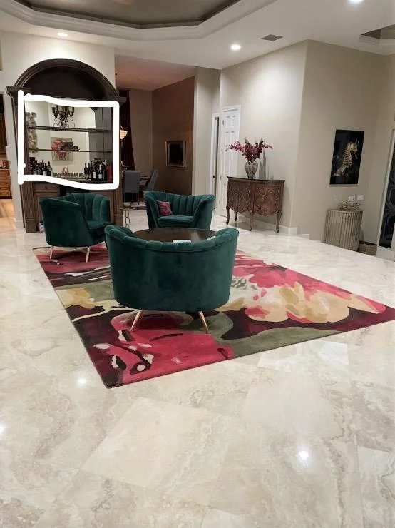 The biggest problem with this home is the multiple flooring materials used. While a travertine tile like this is not used that much anymore throughout the living spaces of a large home, I do think it would be fine to keep this travertine tile.