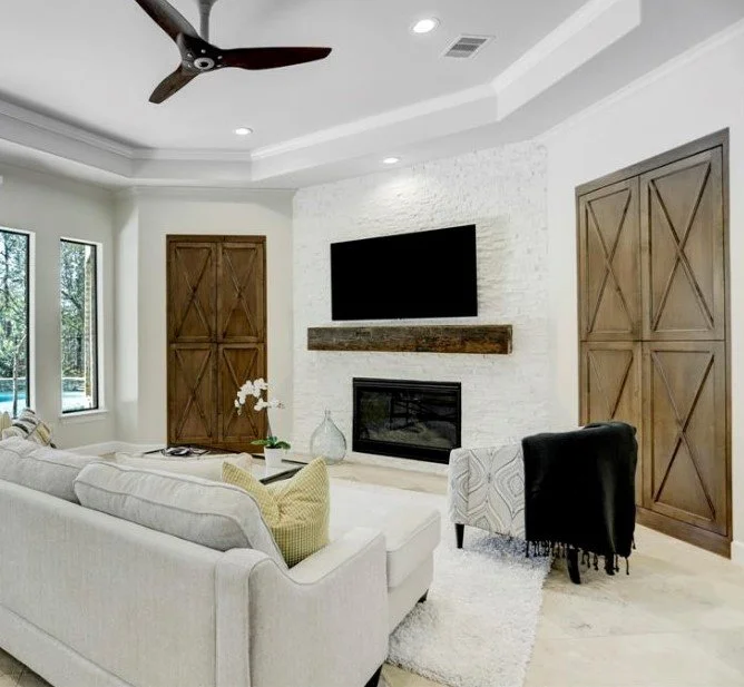 In that project, we went with a very warm toned porcelain tile that almost looked like leather. We could have gone with a wood look tile, but that homeowner did not prefer that look.