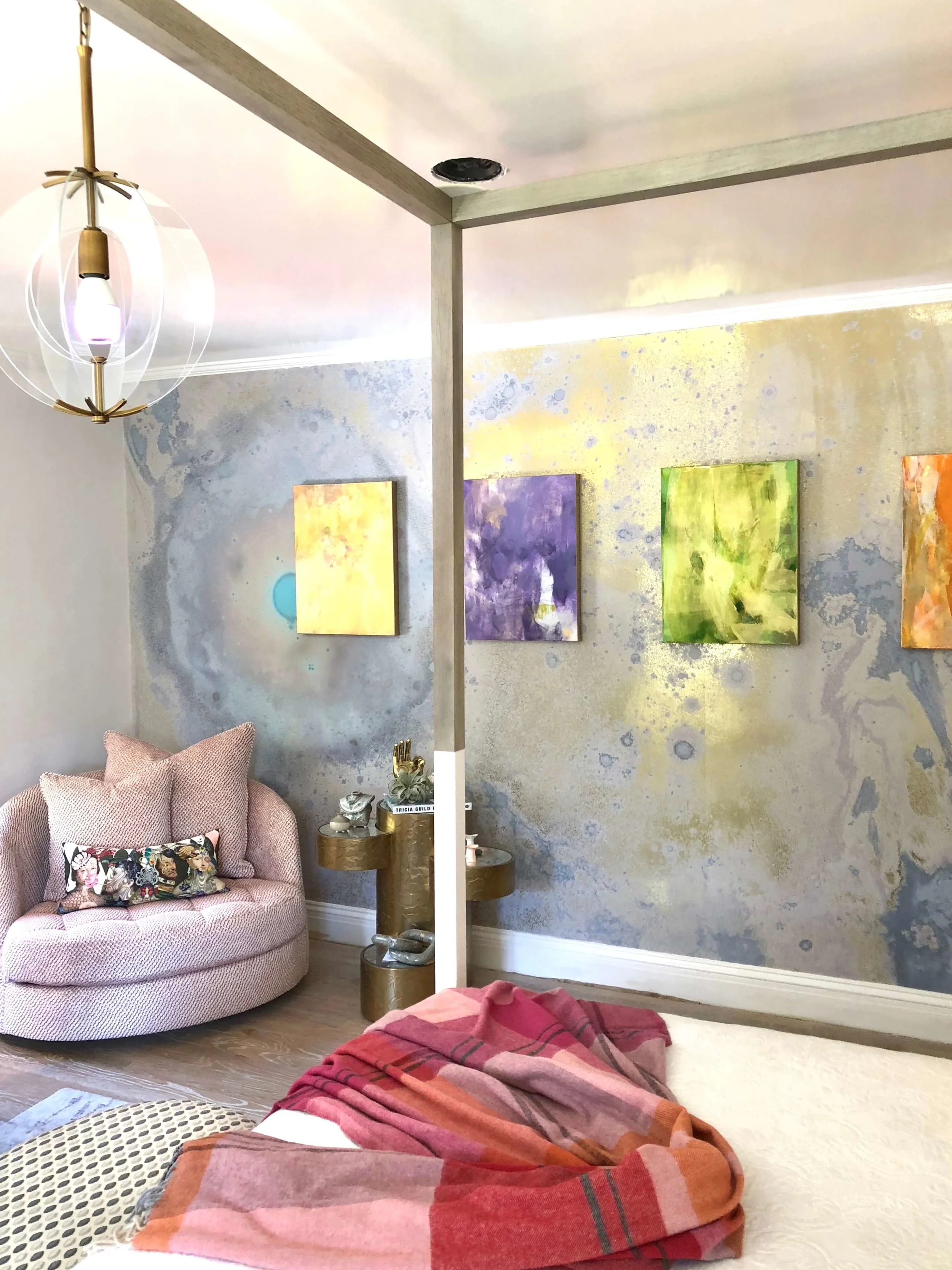Kari encourages everyone to use original art in their home to layer in color, texture, pattern and style. Have a look below at how these works can do just exactly that!