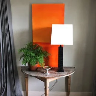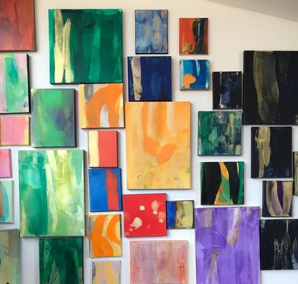 After putting her artistic career on hold for a time to raise her children, she jumped back in painting. She specializes in abstracts and collages for the home at a good price point. Kari often works with designers and stagers to create site-specific pieces for projects.