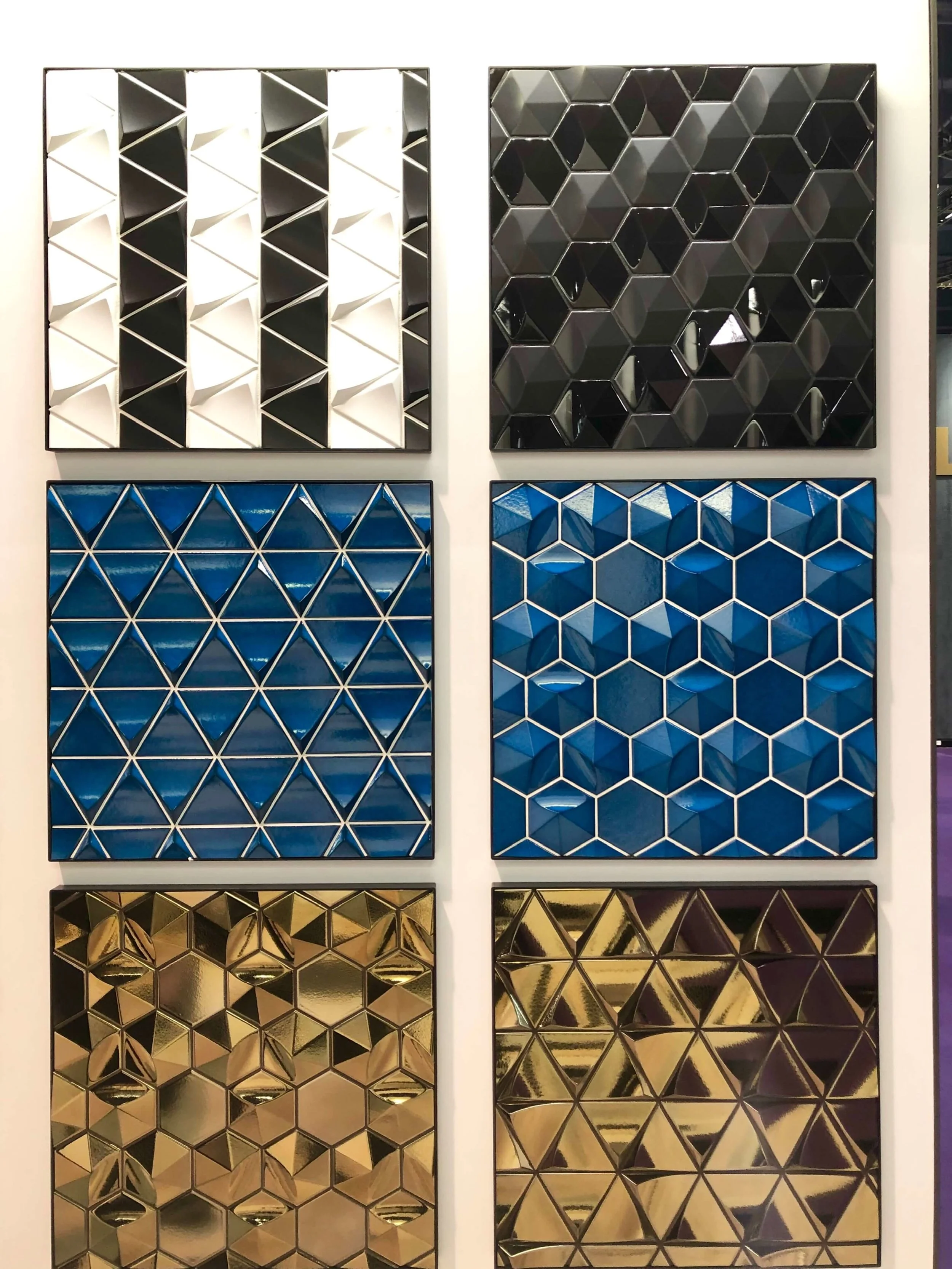 3 Dimensional tiles in hex and diamond shapes at Bedrozian, KBIS 2019 Surfaces Trends
