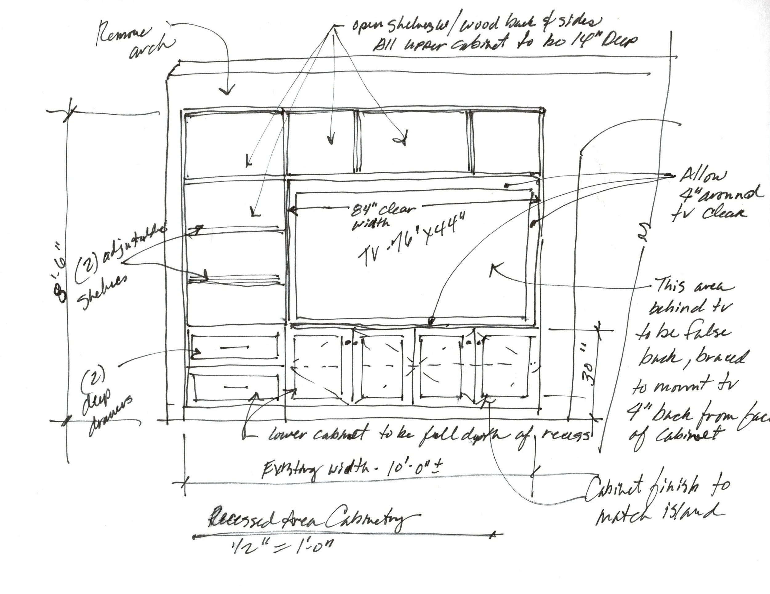 I love doing these false backs with a flat screen tv built-in, to push them forward to the face of the cabinet and make them fit the cabinetry better.