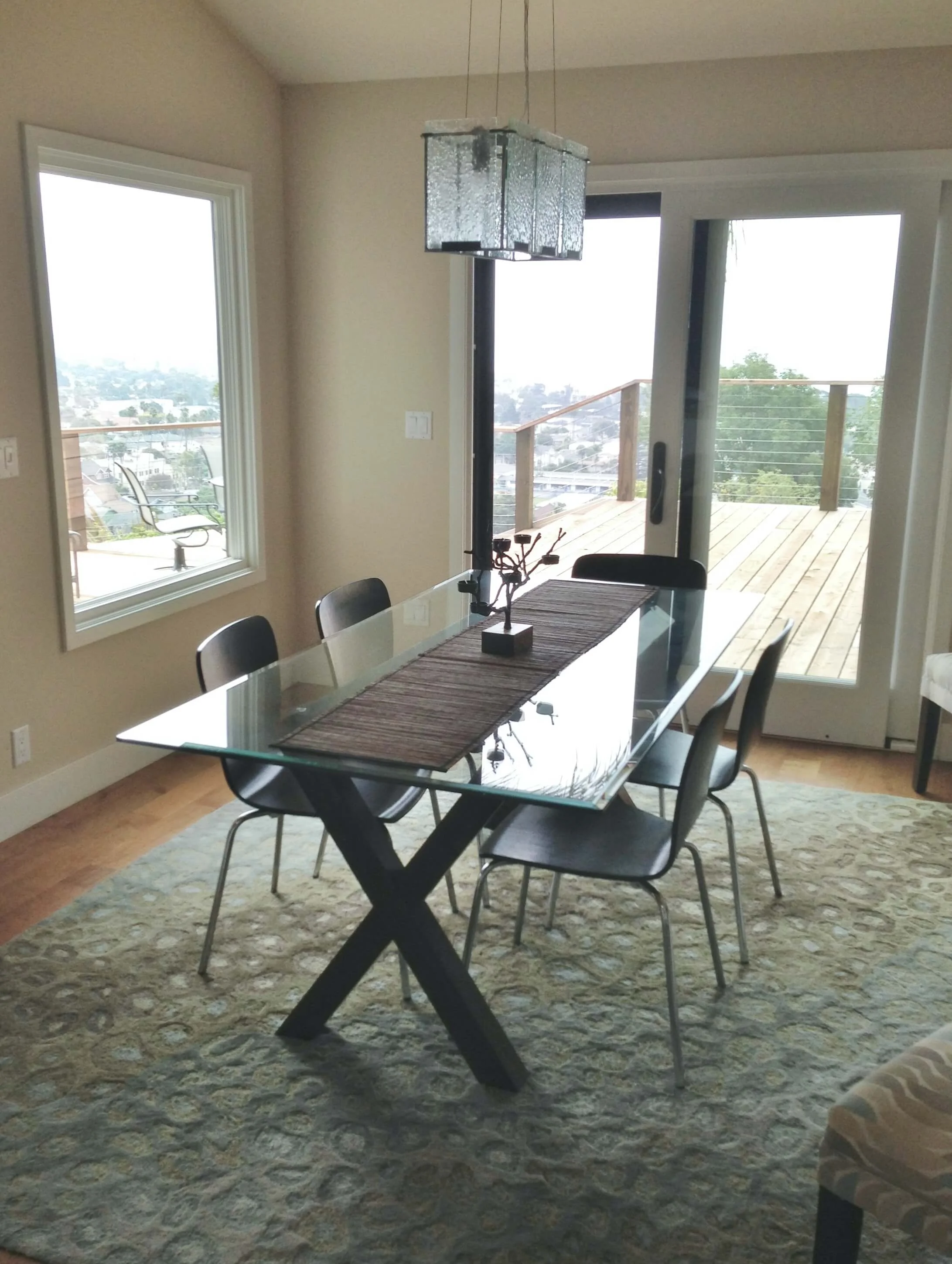 Sliding French doors to balcony deck off dining room - Ventura California rental house review tour