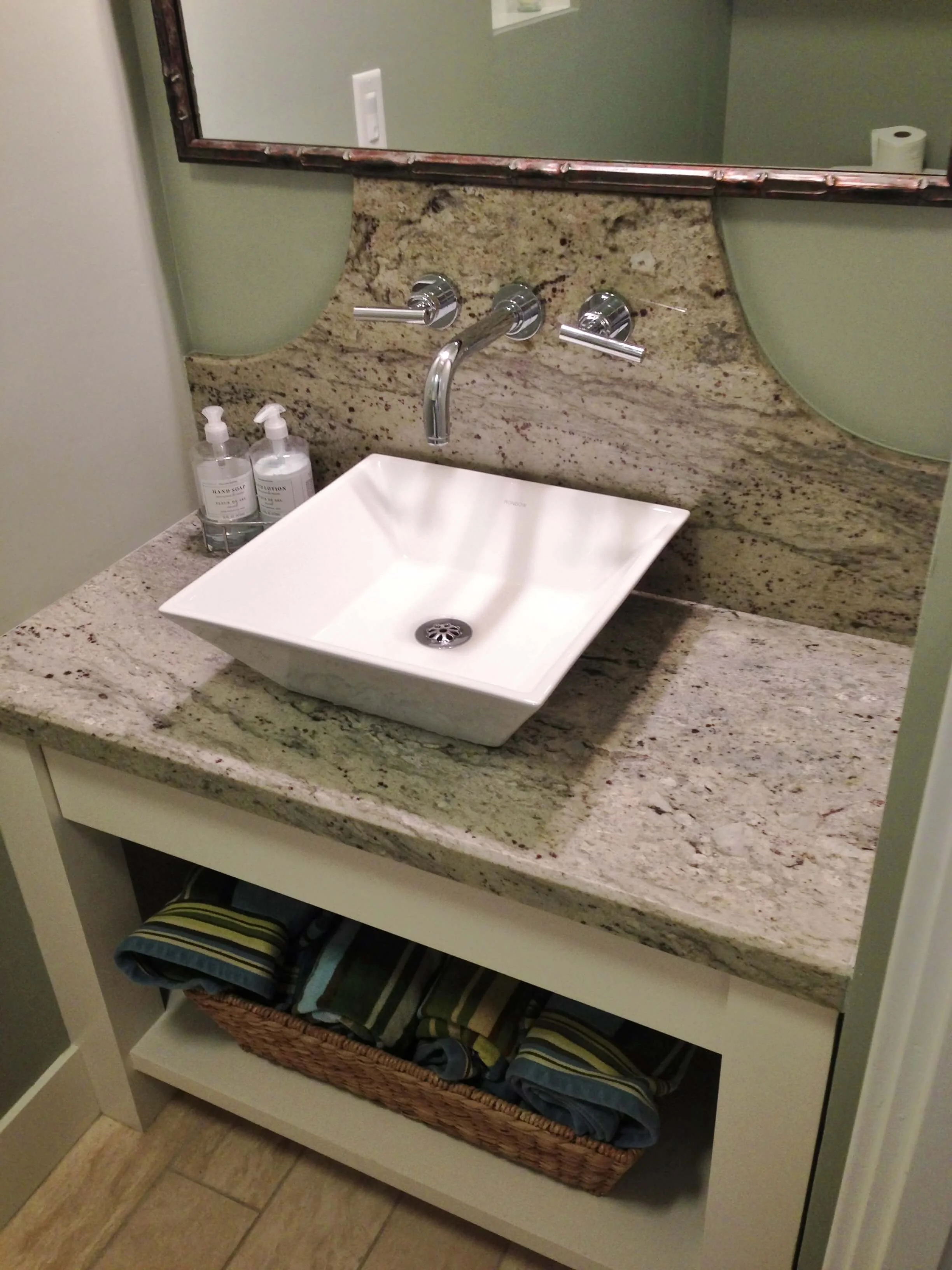 I feel like the granite was a stepping off point for them for their color choices. It was perfect. I’ve used this granite before on a job as a remnant but, for the life of me, cannot recall the name. I haven’t seen it around in the yards very often here in The Woodlands area either. (If anyone can identify it for me, please do so in the comments below!) It was a seafoam green colored background with some purple/maroon flecks and a nice neutral veining.