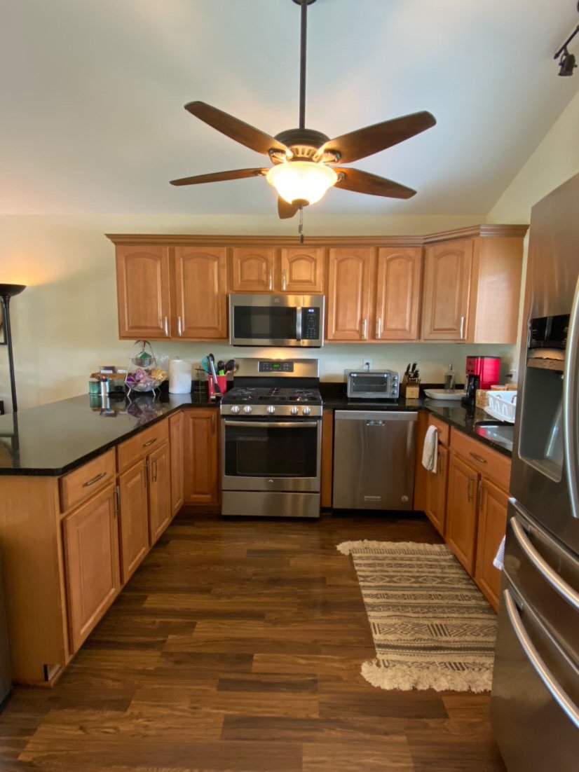 I wouldn’t mind these cabinets if they were with a different floor, maybe something dark gray or a black slate. Even a light tile that wasn’t pinkish or yellow…….but I don’t like these two woods together.